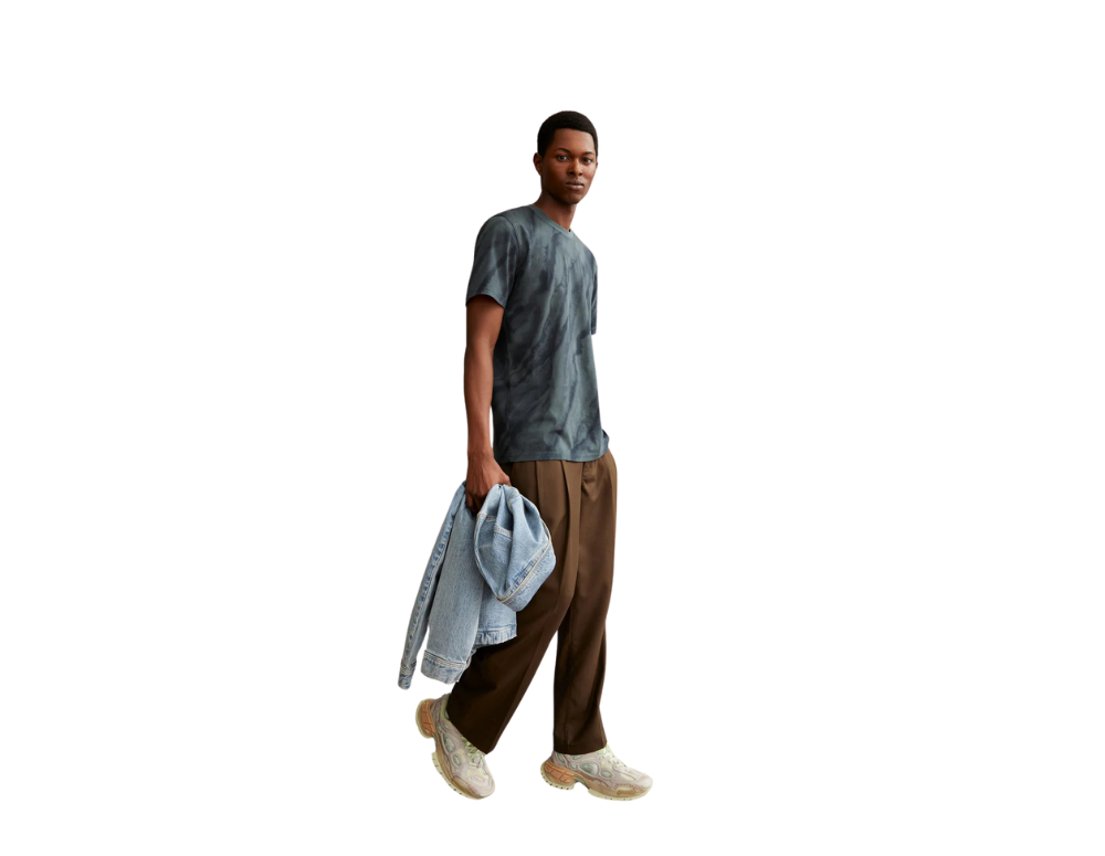 Tricou croială lejeră, cu guler rotund, din 100% bumbac organic cu un model in valuri.